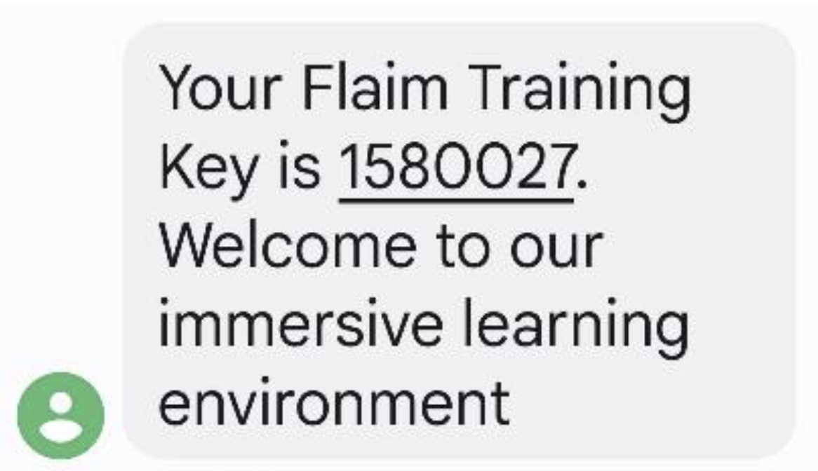 - When a new student account is created, an SMS will also be automatically sent to the mobile phone number recorded on the Sign-Up page confirming that the account has been created. The message will include the student’s FLAIM Training Key.